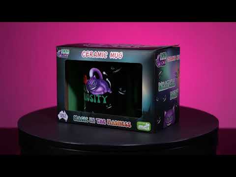 You'll be feline fine all day long! Ceramic mug featuring a cheeky mad cat surrounded by grinning faces. Hand wash only - not microwave or dishwasher safe.