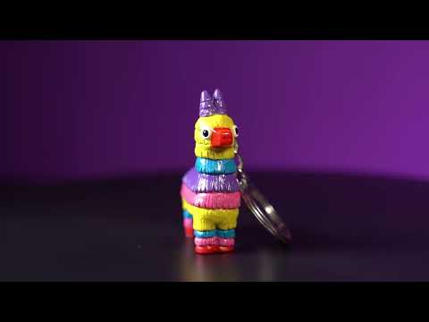 Funky llama pinata shaped keychain! Features a colourful llama with fringe style stripes on a traditional keychain ring. Cute and weird, the perfect way to express your personal. style
