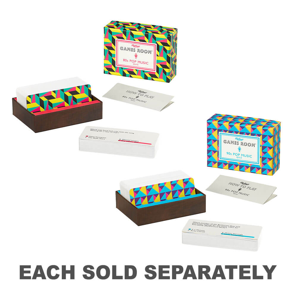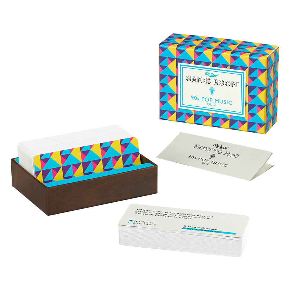 With a host of questions spanning the decade, you"ll have fun remembering artists like the Spice Girls and Nirvana and hits such as MMMBop! Features 140 multiple choice question cards presented in a 90s-inspired geometric box.