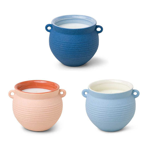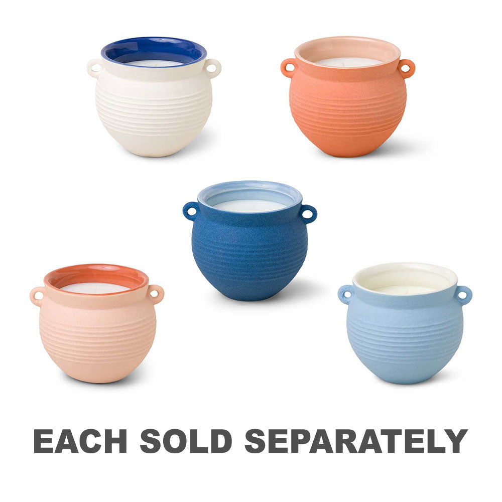Escape to an island in the Aegean Sea with this Santorini collection item. Influenced by timeless texture, this item will transport you to a volcanic island of pure paradise. This 240g candle is hand-poured into a small pottery jug with handles and ribbed details that matches the style and scent of Santorini. After enjoying the Santorini-inspired scents, this unique vessel can be repurposed as a stylish storage vase.