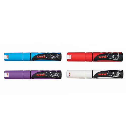 Liquid Chalk Marker - Uni - Chisel Tip - 8mm - Gold Stays on in the rain, washes off with a damp cloth. For use on non-porous surfaces, including glass/window surfaces, mirrors, metal and chalkboards.